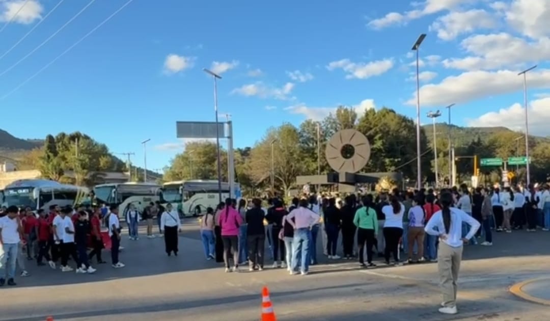 Estudiantes de la Escuela Normal Rural Lic. Benito Juárez, realizaron una marcha pacífica desde la instalaciones de la institución ubicada en Panotla, Tlaxcala, hasta la zona conocida El Trébol, para colocar una corona floral con motivo del tercer aniversario luctuoso de su compañera Beatriz N. acaecida durante una protesta en 2022.