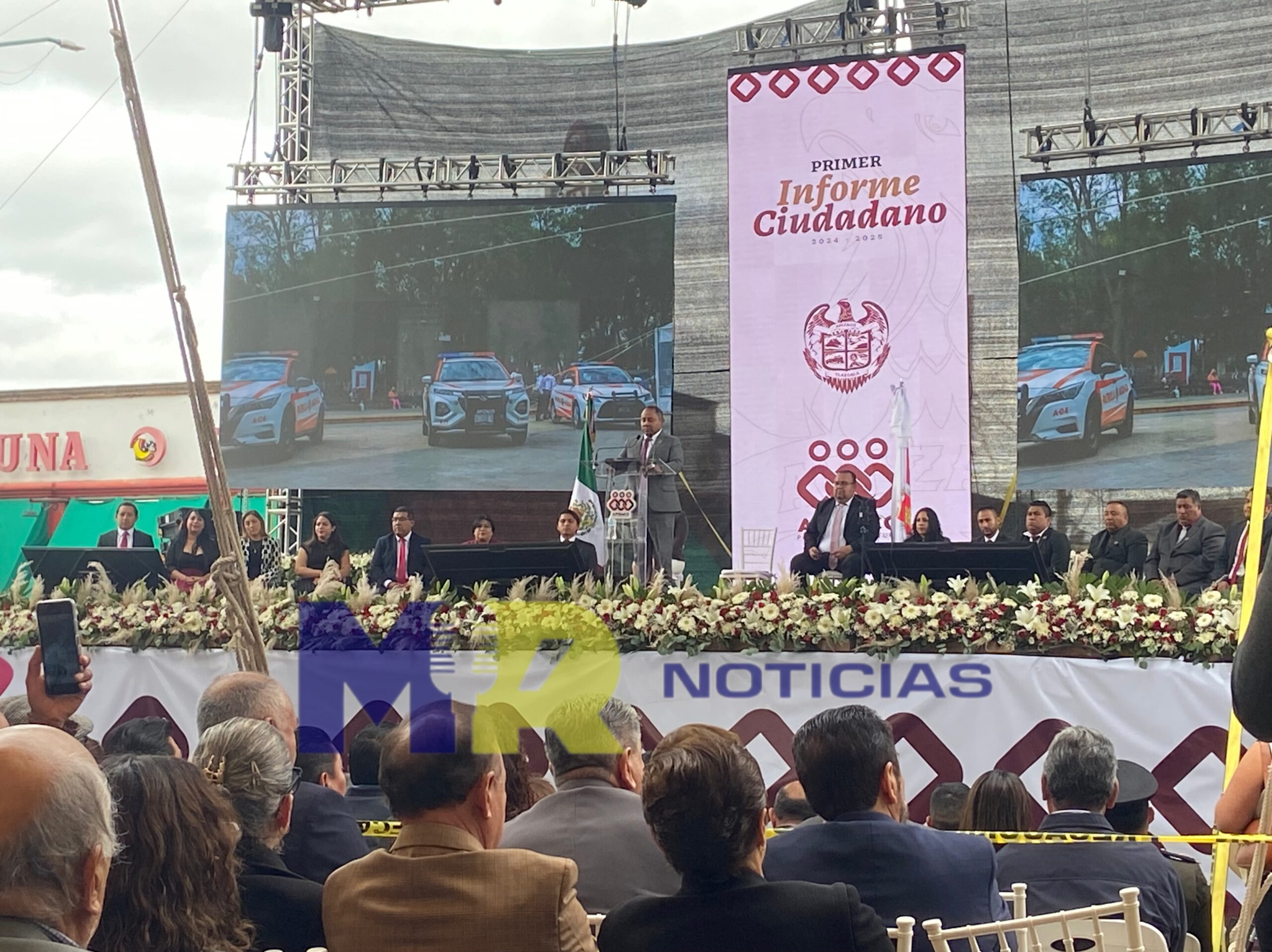 El presidente municipal de Apizaco, Javier Rivera Bonilla, presentó su Primer Informe Ciudadano ante cientos de asistentes en el Parque Cuauhtémoc, destacando avances en materia de seguridad, fortalecimiento de servicios públicos y finanzas municipales.