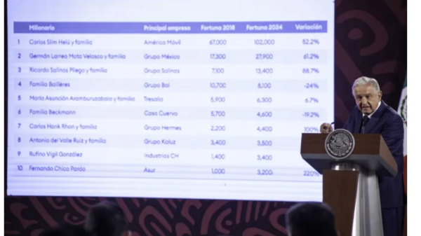 El Presidente pidió a los empresarios Carlos Slim, Germán Larrea, Ricardo Salinas, los Baillères y María Asunción Aramburuzabala que informen si están de acuerdo...